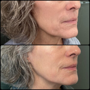 This patient’s chin filler added definition and balance, enhancing her contours.